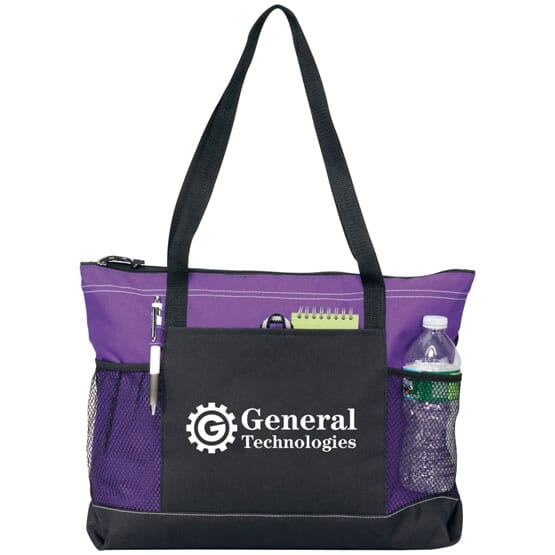 • Roomy and functional customized totes constructed from durable 600D poly-canvas.
