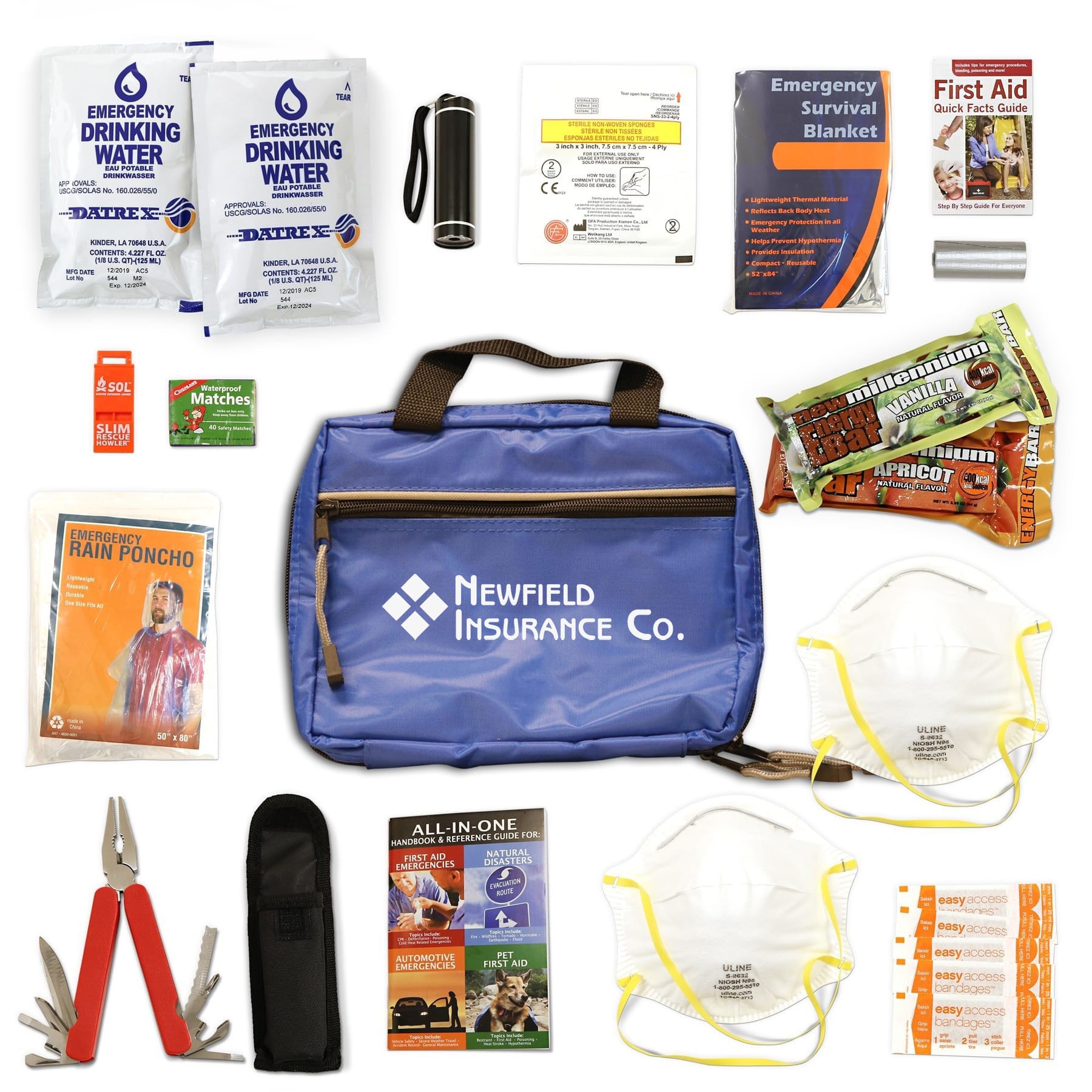 • This disaster kit is a great start, as it's full of quality survival essentials. Inside the sturdy case, you'll find an LED flashlight with batteries, heat-reflective blanket, emergency drinking, first aid supplies, All-in-One Emergency Guide, and more.