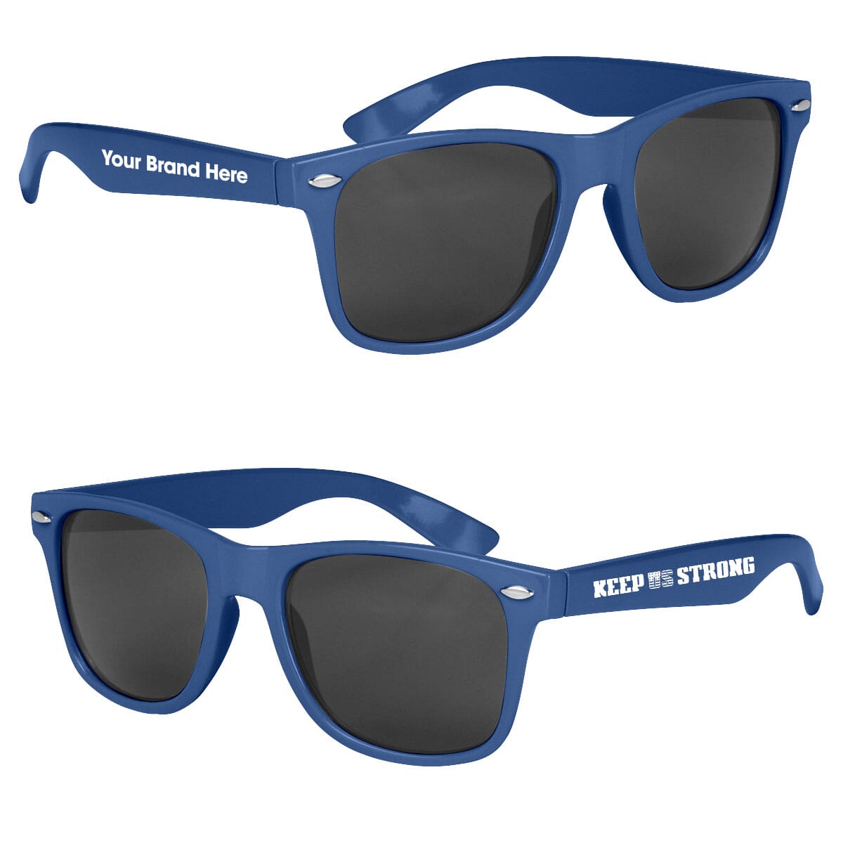 • Comes with Keep US Safe logo on one temple bar, your custom logo on the other.